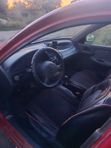 Daewoo Lanos, хэтчбек, красный цвет. Основные особенности: - Кузов: 5‑дверный хэтчбек, компактный, удобный для города. - Салон: тканевые сиденья с накидками, передняя панель с чехлом «LANOS», ауди...