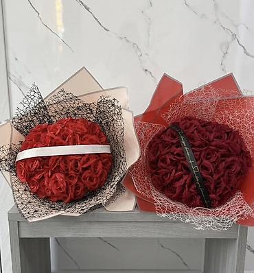 - Оформление: декоративная сетка и дизайнерская флористическая упаковка, акцентная лента с надписью “love you forever”.