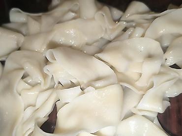 Домашние пельмени/чучвара/вареники ручной лепки - Классическая форма, аккуратная защипка, равномерная толщина теста - Тесто эластичное, тонкое, без трещин; лепка на присыпанной деревянной доске - ...