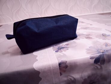 - Косметичка/несессер темно‑синего цвета из износостойкой ткани, на молнии, с петлей‑хватом.
