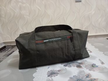 - Вместительная дорожная/спортивная сумка из плотной ткани (темно‑серый). Длинные ручки для переноски в руке или на плече. Верх на молнии. На фасаде горизонтальный карман на молнии с надписью PROFESSIONAL.