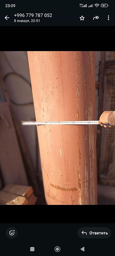 - На фото показана мерная лента: ориентировочный диаметр резервуара около 60–65 см; высота — около 2 м+.