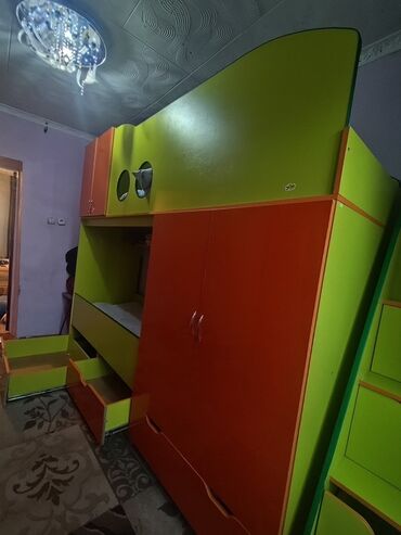 Детская мебель «комплекс»: двухъярусная кровать с системой хранения и шкафом.