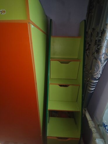 - Подъем на второй ярус по лестнице-комоду: в каждой ступени выдвижной ящик для хранения.