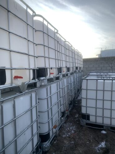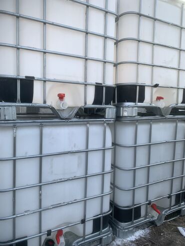 Пластиковые кубовые емкости (IBC) с металлическим каркасом. Характеристики: - Объем: ориентировочно 1000 л каждая - Материал бака: полиэтилен высокого давления (HDPE) - Каркас: оцинкованный металл...