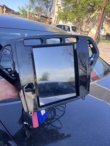 Форд Мондео Штатная магнитола-головное устройство в сборе с рамкой для автомобиля (форм-фактор под центральную консоль). Большой сенсорный экран в вертикальном формате, глянцевая панель с проёмами под воздуховоды и кнопки. Сзади — полноценный блок ГУ с радиатором и разъёмами.
