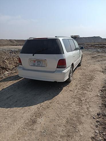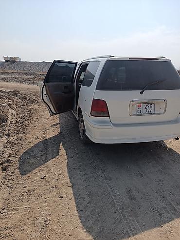 Honda Odyssey (первое поколение) — белый минивэн с левым рулём и киргизскими номерами. Кузов и экстерьер: - Длина кузова с интегрированным спойлером, рейлинги на крыше - Сдвижные задние двери по о...