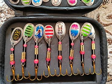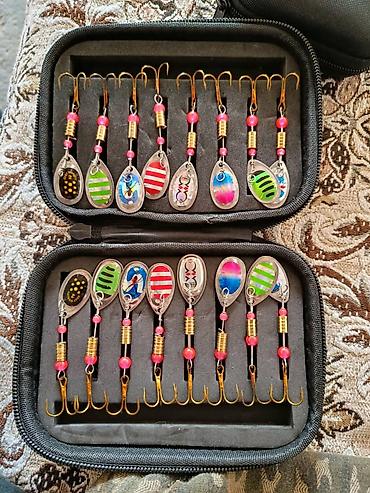 - Комплект из 16 вращающихся блёсен-вертушек в жёстком zip-чехле с вкладышем под каждую приманку.