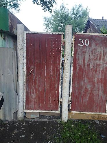 - Закрытый двор с высокими воротами и калиткой на металлических столбах.