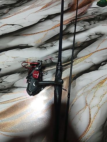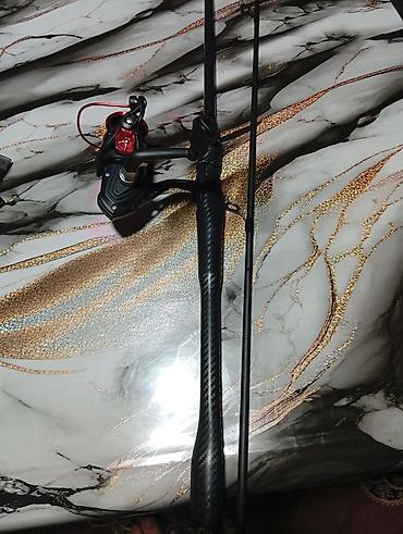 - Спиннинговое удилище из карбона (видна карбоновая оплётка), двучастное.