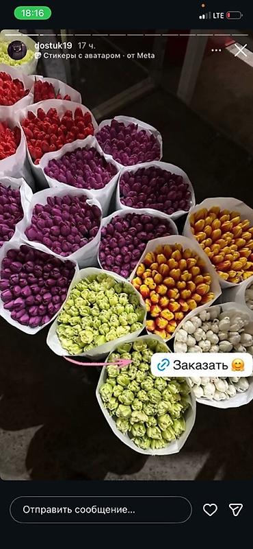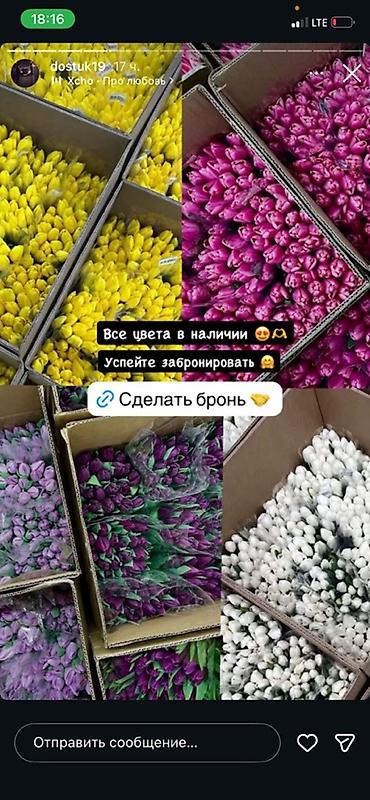 - Упаковка: свежесрезанные тюльпаны в бумажных обёртках/крафт и в коробках; плотные бутоны, длинные ровные стебли, листья сохранены.