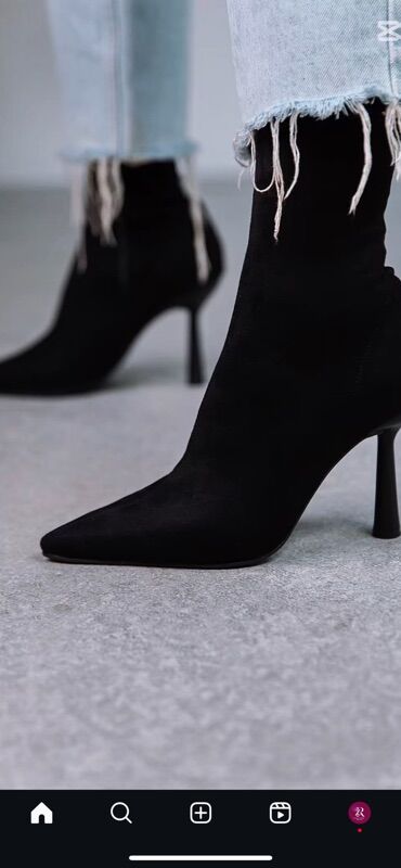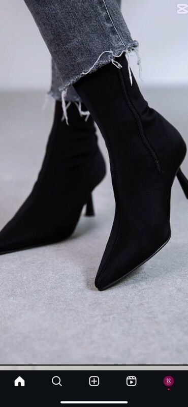 Чёрные ботильоны-носки на шпильке - Силуэт: узкий носок, обтягивающий