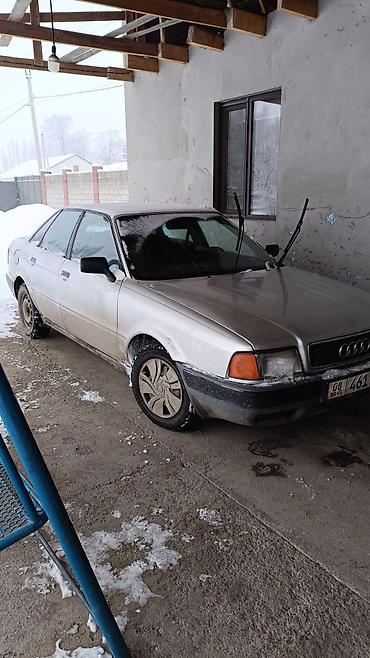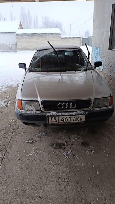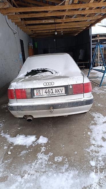 Audi 80 B4, седан, левый руль. Цвет — серебристый. Киргизская регистрация (номер на фото).