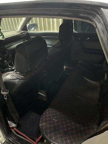 Audi 100 C4 седан, тёмный цвет кузова. Классический дизайн, оцинкованный кузов, фирменная решётка радиатора Audi, прямоугольная оптика с оранжевыми указателями поворота. Основные особенности: - К...