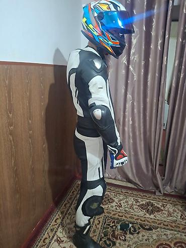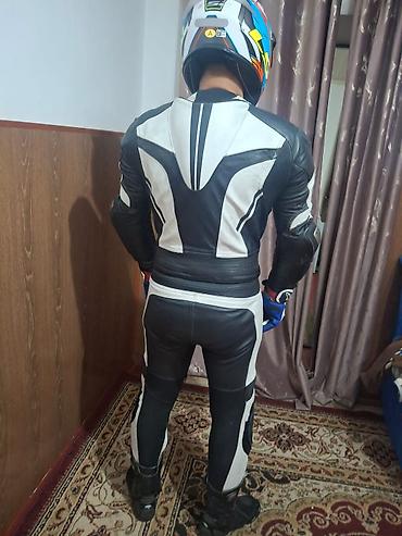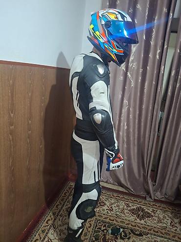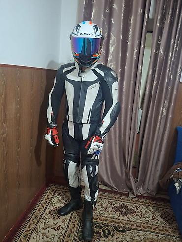 Кожаный мотокомбинезон фирмы BUSE ARAGONS и шлем ls2 за шлем 7500сом спортивного типа (раздельный и можно зделать цельный), черно-бело- на рост до 1.80 при весе до 80кг