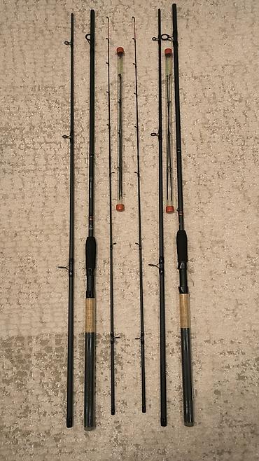 Комплект из двух трехчастных фидерных удилищ с заменяемыми вершинками: