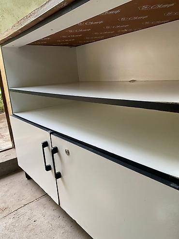 - Функционал: удобна для кухни, мастерской, офиса или ресепшена — сочетает закрытое и открытое хранение, выдерживает горячую посуду и интенсивную работу на столешнице.