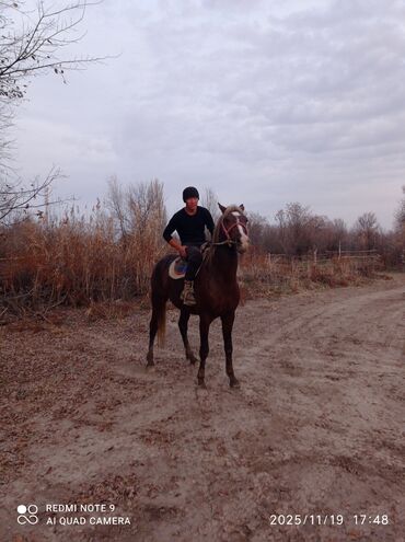 Ушул Ат сатылат бою улагы урганы гарантия скорость жакшы Основные особенности: - тип:жазга 4жаш - масть: гнедая, белая проточина на голове - комплектация на фото: уздечка, недоуздок, повод, седло...