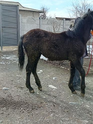 Лошадь (жеребёнок/молодая кобыла) в стойловом содержании. Описание: - Масть: темно-гнедая/вороная, черный хвост и грива. - Возраст визуально молодой, компактное телосложение, крепкие конечности. -...