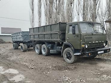 - Комплектация: тягач КАМАЗ 6×4 с самосвальным кузовом + одноосный (двухосный тележка) самосвальный прицеп. Полноценный автопоезд для перевозки сыпучих грузов.