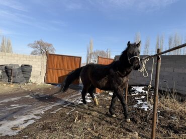 Жеребец вороной масти. Айгыр сатылат уйуру бар, улагы бар, Буту колу таза. жашы жазка 6 жаш ( 3 асый ) бою 157см
