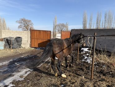 Бээ 5 жаш бооз колу буту соо ден соолугу чын жоош ! Лошадь (масть гнедая), вероятно кобыла, на привязи. Крепкий костяк, широкая грудь, выраженная мускулатура крупа. Конечности ровные, копыта т...