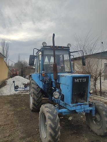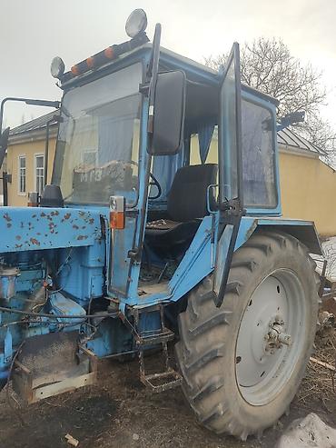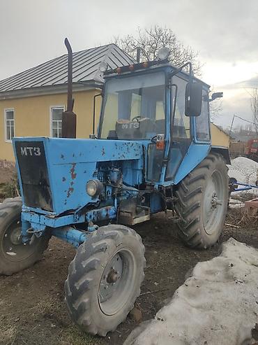 - Колёсный трактор МТЗ синего цвета, класс тяги приблизительно 1,4.