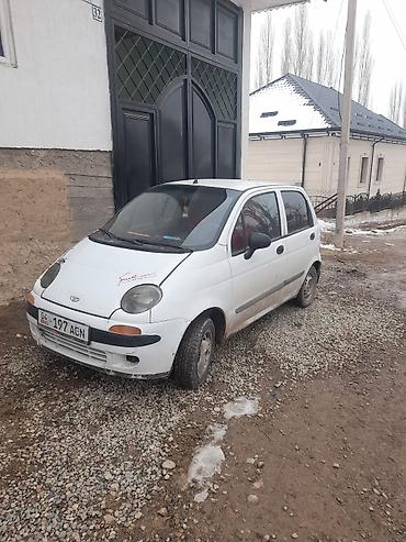 Daewoo Matiz, 5‑дверный хэтчбек, белый цвет, номерные знаки KG. Компактный городской автомобиль с экономичным бензиновым двигателем и механической коробкой передач. Передний привод.