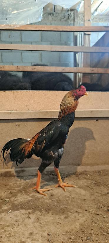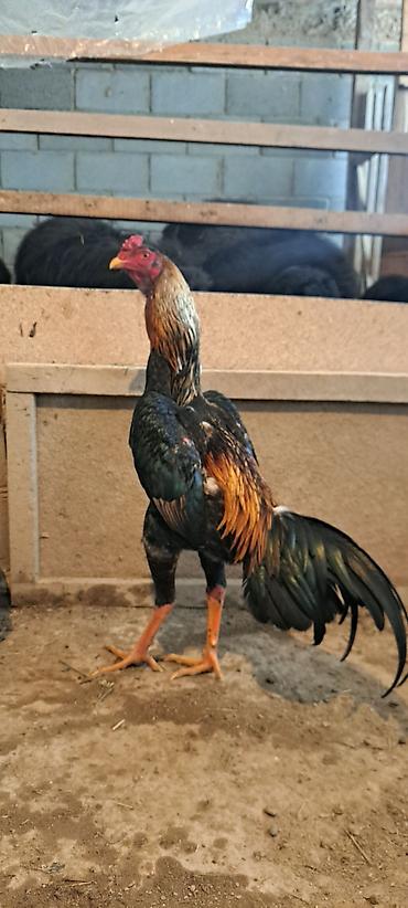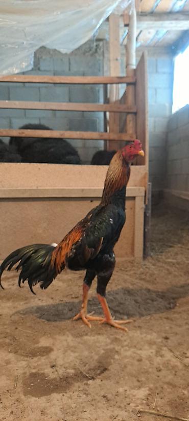Петух бойцовой породы (похож на асаил/малая), высокий и мощный, с характерной длинной шеей и крепкими ногами. - Окрас: чёрный с зелёным отливом, красный гребень и мочки. - Телосложение: вытянутое, ...4 500 KGS