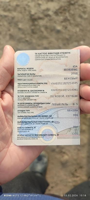 Kia Morning: 2020 г., 1 л, Автомат, Бензин, Хэтчбэк