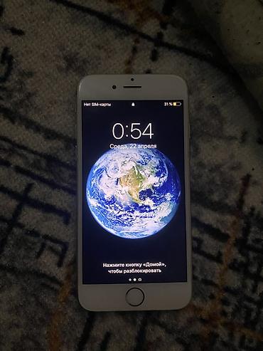 IPhone 6, цвет Silver (серый). Экран 4.7" Retina, кнопка «Домой» с Touch ID. Корпус из алюминия, разъём Lightning, 3.5 мм аудиоразъём, динамик и микрофон снизу. Кнопка питания на правом торце, на левом — переключатель беззвучного режима и качелька громкости.