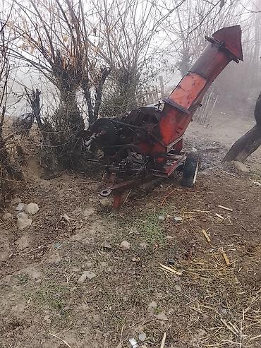 - Навесная/прицепная дробилка-измельчитель (корморезка) на раме с колесом и опорами. Привод шестерёнчатый цепной, загрузочный лоток и высокий отводящий кожух-труба для выброса измельчённой массы.