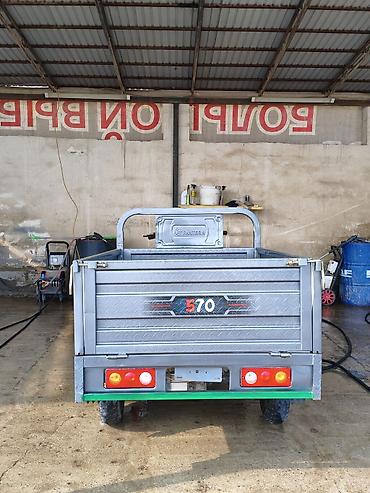 Грузовой трёхколёсный мотоцикл (трицикл) с кабиной и кузовом-самосвалом. Основные особенности: - Закрытая передняя часть с ветровым стеклом, крышей и зеркалами для защиты водителя от осадков и вет...