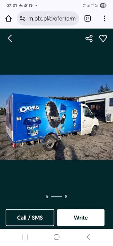 - Кузов: однообъёмный фургон с холодильным отсеком, боковые и задние двери. На борту брендированная термобудка (OREO).