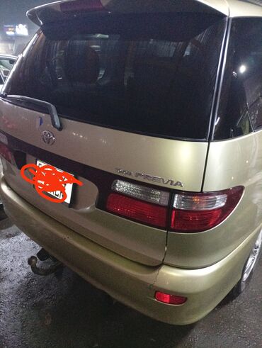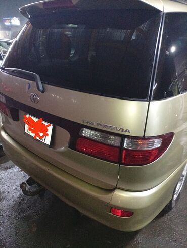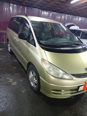 Toyota Previa 2000 г просторный минивэн золотистого цвета.