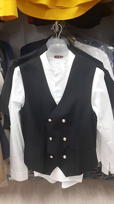- Жилет официанта/метрдотеля: классический черный, двубортный с серебристыми пуговицами, глубокий V-образный вырез, два внешних кармана. Идеально сочетается с белой сорочкой.