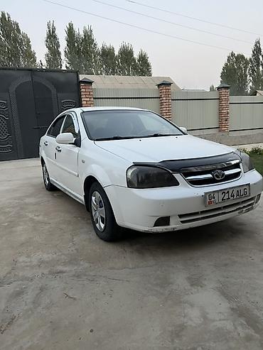 Chevrolet Lacetti, белый седан Основные характеристики: - Кузов: 4-дверный седан, белый цвет - Привод: передний - Топливо: бензин - Кузов и стекла: заводская тонировка задних стекол, боковые ветро...