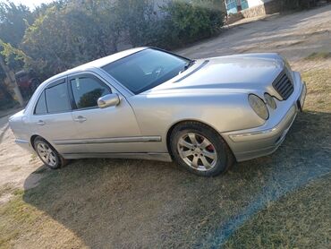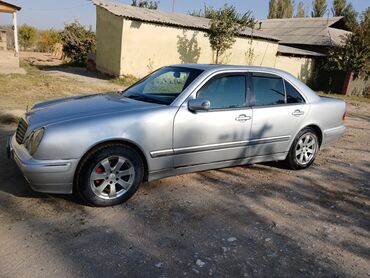Mercedes-Benz E‑Class седан (кузов W210), серебристый. Основные характеристики: - Кузов: 4‑дверный седан, серебристый цвет, заводские литые диски Mercedes. - Двигатель: бензиновый V‑образный, фирм...