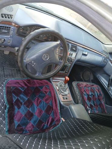 Mercedes-Benz E‑Class W210, седан, серебристый. Основные характеристики: - Кузов: 4‑дверный седан, цвет — серебристый металлик. - Трансмиссия: автомат (селектор на центральной консоли). - Привод: ...