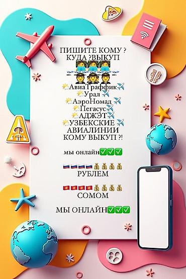 - Выкуп/оформление билетов на популярные авиакомпании: Aeroflot, S7 Airlines, Nordwind, Ural Airlines, AviaTraffic, а также Pegasus, AeroNomad, Uzbekistan Airways и др.