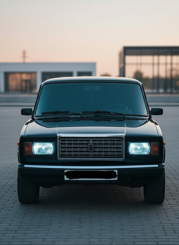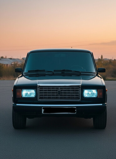 ВАЗ 2107, классический седан в стильном черном исполнении с современными доработками.