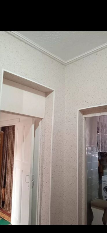 - Просторная кухня через арочный проём, рабочая зона с верхними и нижними шкафами, мойка.