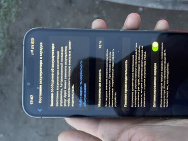 - Аккумулятор: максимальная ёмкость 78%, включена «Оптимизированная зарядка». На экране «Состояние аккумулятора» отображается важное сообщение о необходимости сервиса для восстановления полной ёмкости.