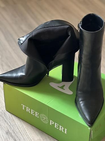 Стильные ботильоны с острым носком и массивным устойчивым каблуком — универсальная пара на каждый день и для выхода. Подчёркивают линию ноги, сочетаются с платьями, джинсами и классическими брюками. Маркировка на коробке: TREE PERI.