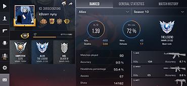 - Вкладки статистики: Competitive, Allies, Duel, общая статистика и история матчей