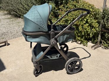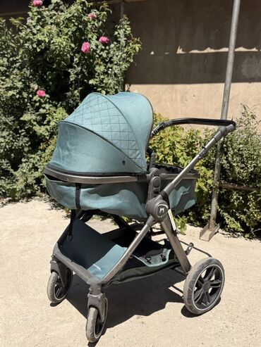Универсальная детская коляска 2-в-1 (люлька + прогулочный блок), цвет хаки/оливковый. Основные особенности: - Шасси из легкого металла с лаконичным дизайном, центральный замок фиксации блока. - Бо...