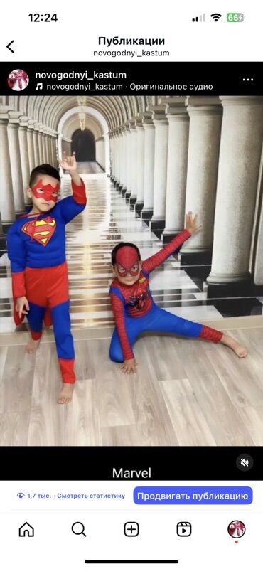 Дополнительно на фото: подпись «Новогодние костюмы», «Marvel».