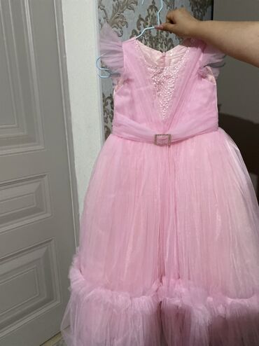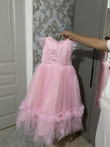 Нарядное детское платье принцессы, нежно-розовое - Длина: в пол, пышная юбка из многослойного фатина с широким воланом по подолу - Верх: открытые плечи, приспущенная линия горловины с мягкой оборк...