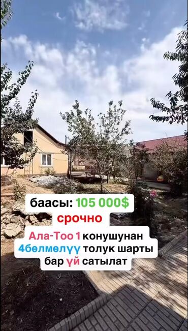 🏠Продается дом в с. Сокулук. 🟡 Комнаты: 4 🟡 Участок: 6,5 сотки 🟡 Отопление: твердотопливное/газовое 🟡 Дополнительно: Просторный кирпичный дом площадью 100 кв.м со всеми удобствами внутри. Установле...