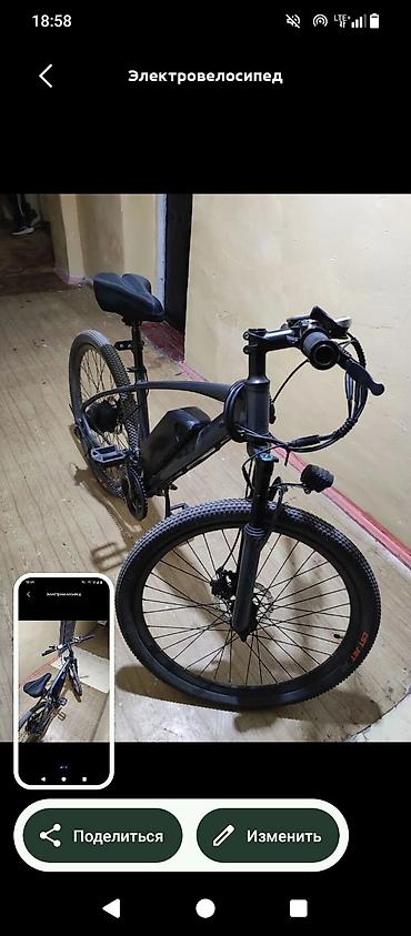 Электровелосипед. Арзан баада болуп толоо жолу бар без первоночальный Ватсапп. Бонустар бар - Привод: электромотор в заднем колесе - Питание: съемный аккумулятор (размещен по центру рамы, с замк...Вход•Регистрация